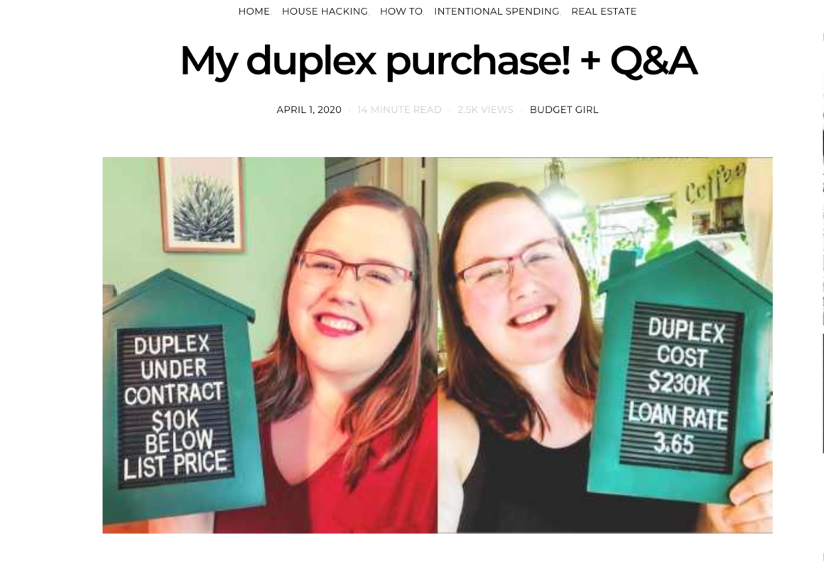 For instance, I think having someone else paying most of my mortgage for me (by renting out the other side of the duplex) is the coolest trick in the world. 🤩#househacking